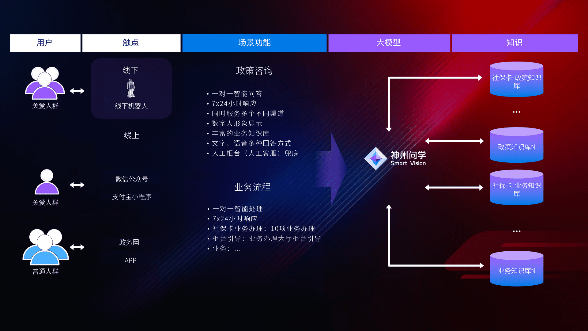 • 线上线下全覆盖:线上提供微信公众号、、、支付宝小程序、、政务网、、、、app多种渠道,,与线下机器人形成完整服务体系。。。