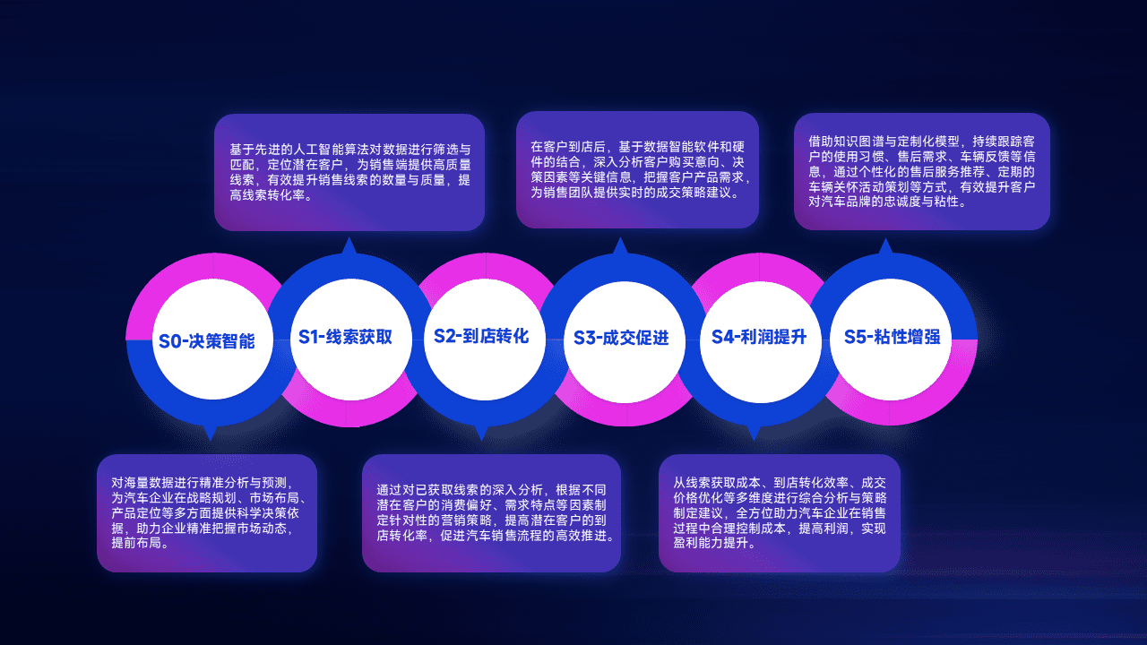 通过拓宽潜在客户来源、、优化线索分配并提高到店转化率,,以增强销售效率。。同时,,,,利用线索数据不断优化分析模型,,,有效提升转化率,,,扩大营销影响力。。